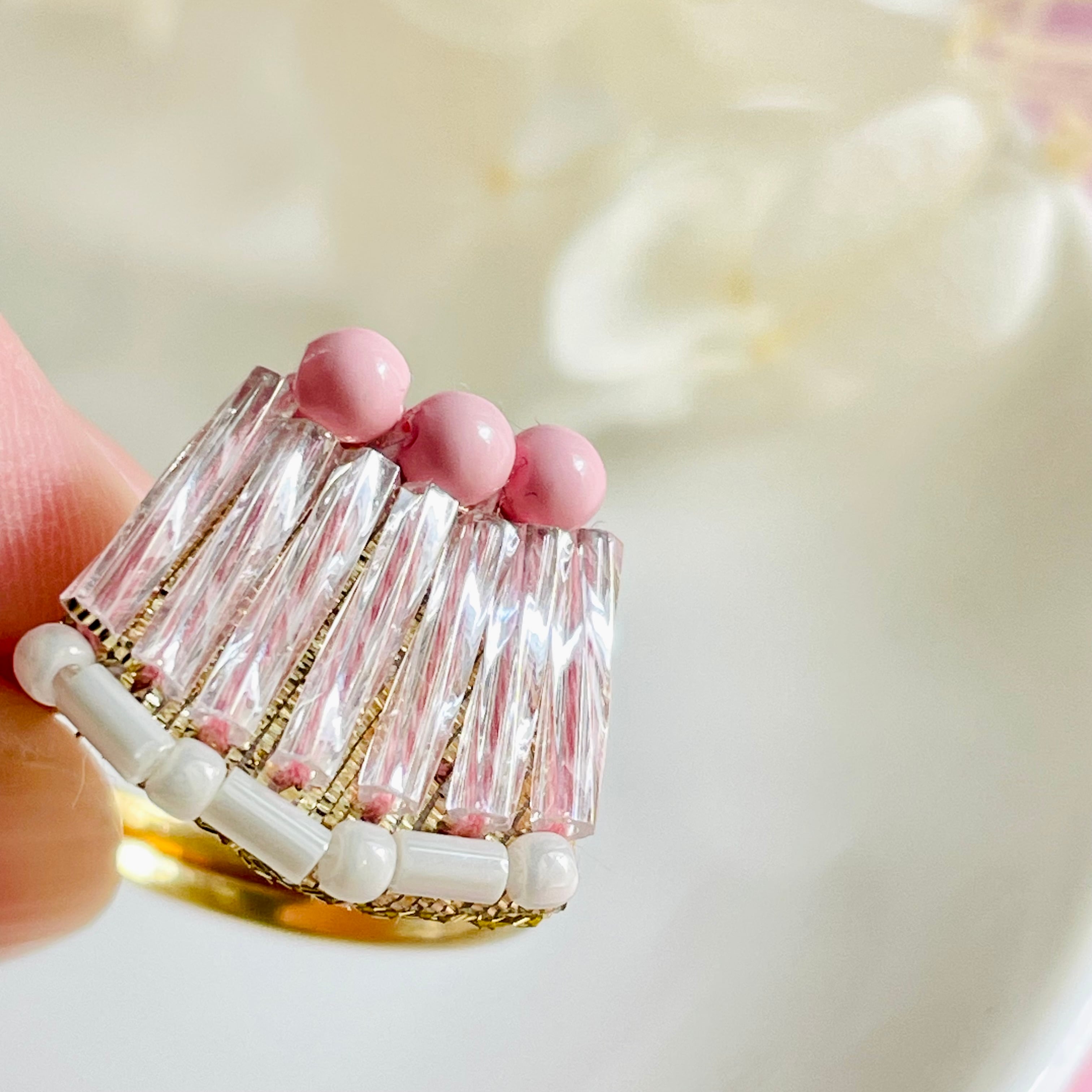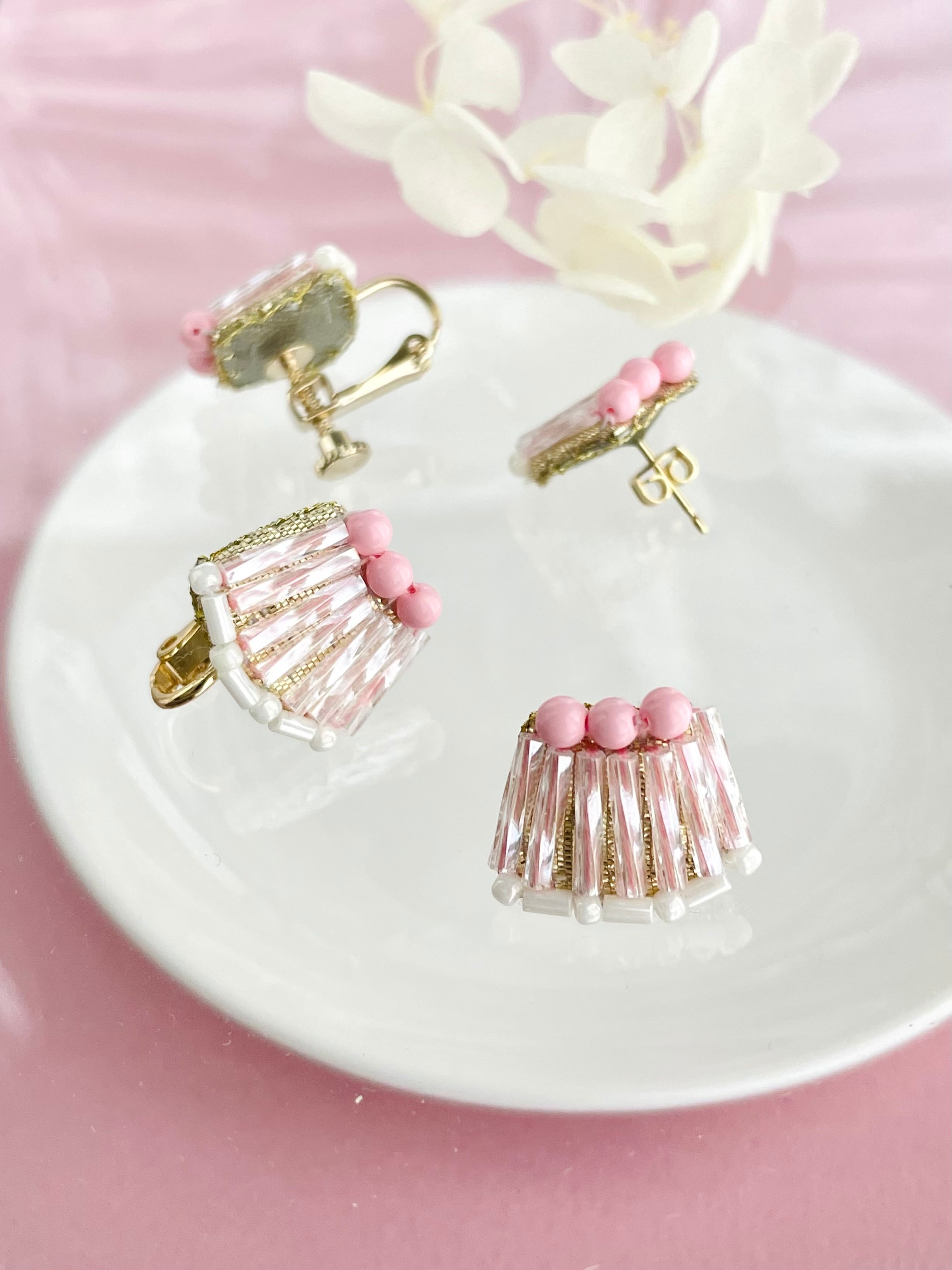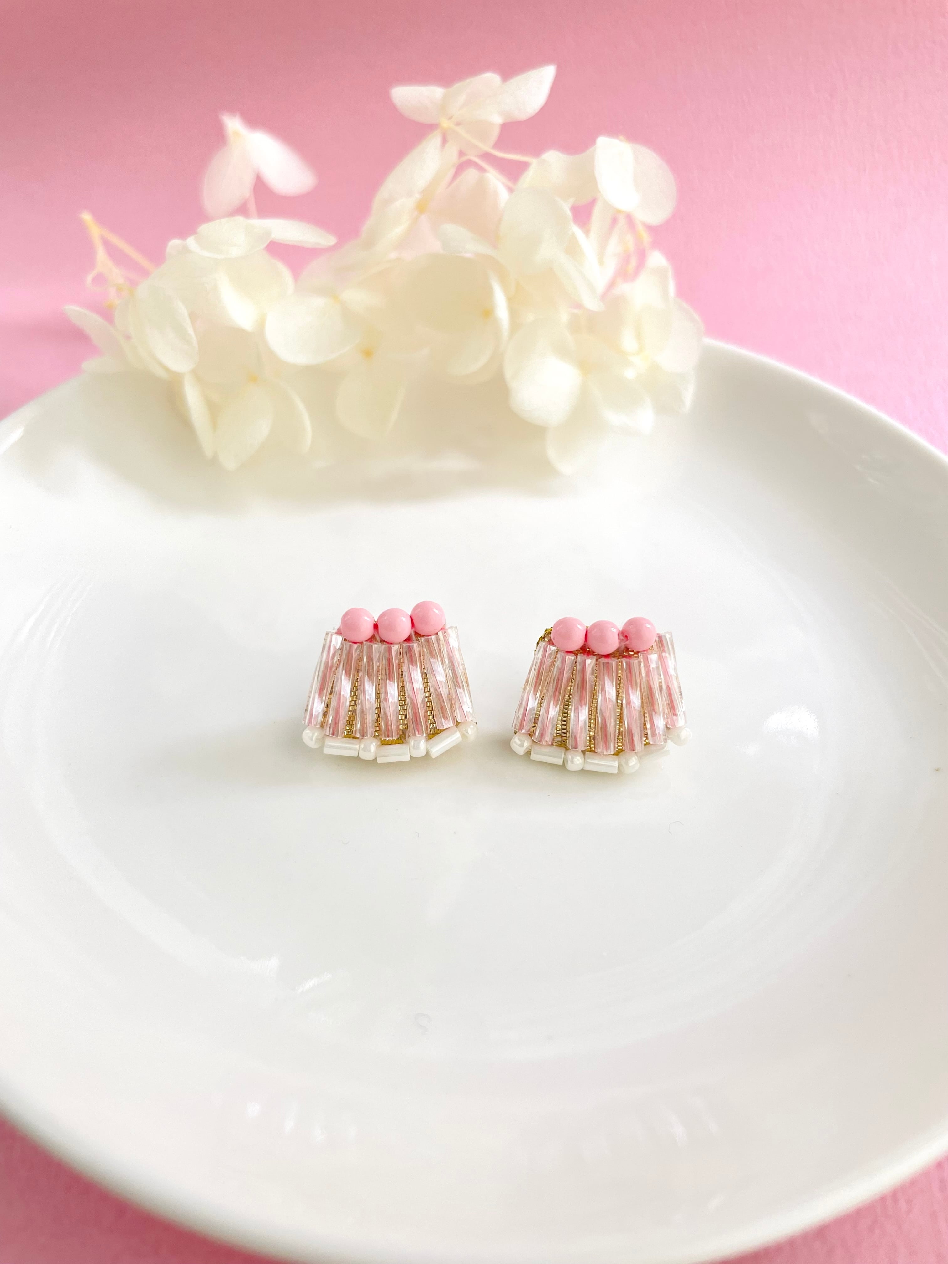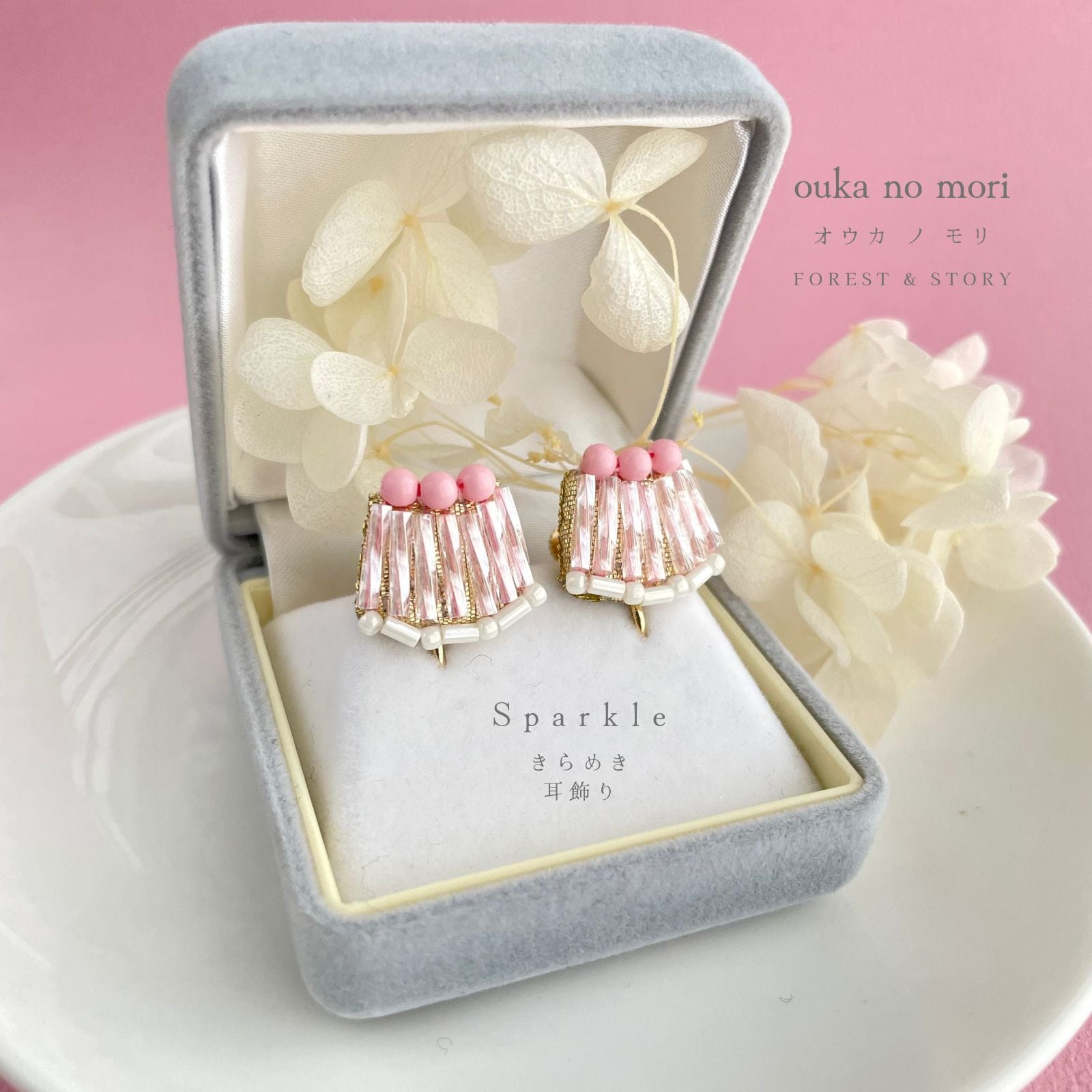 Sparkle耳飾り / きらめきピンクビーズ ピアスorイヤリング