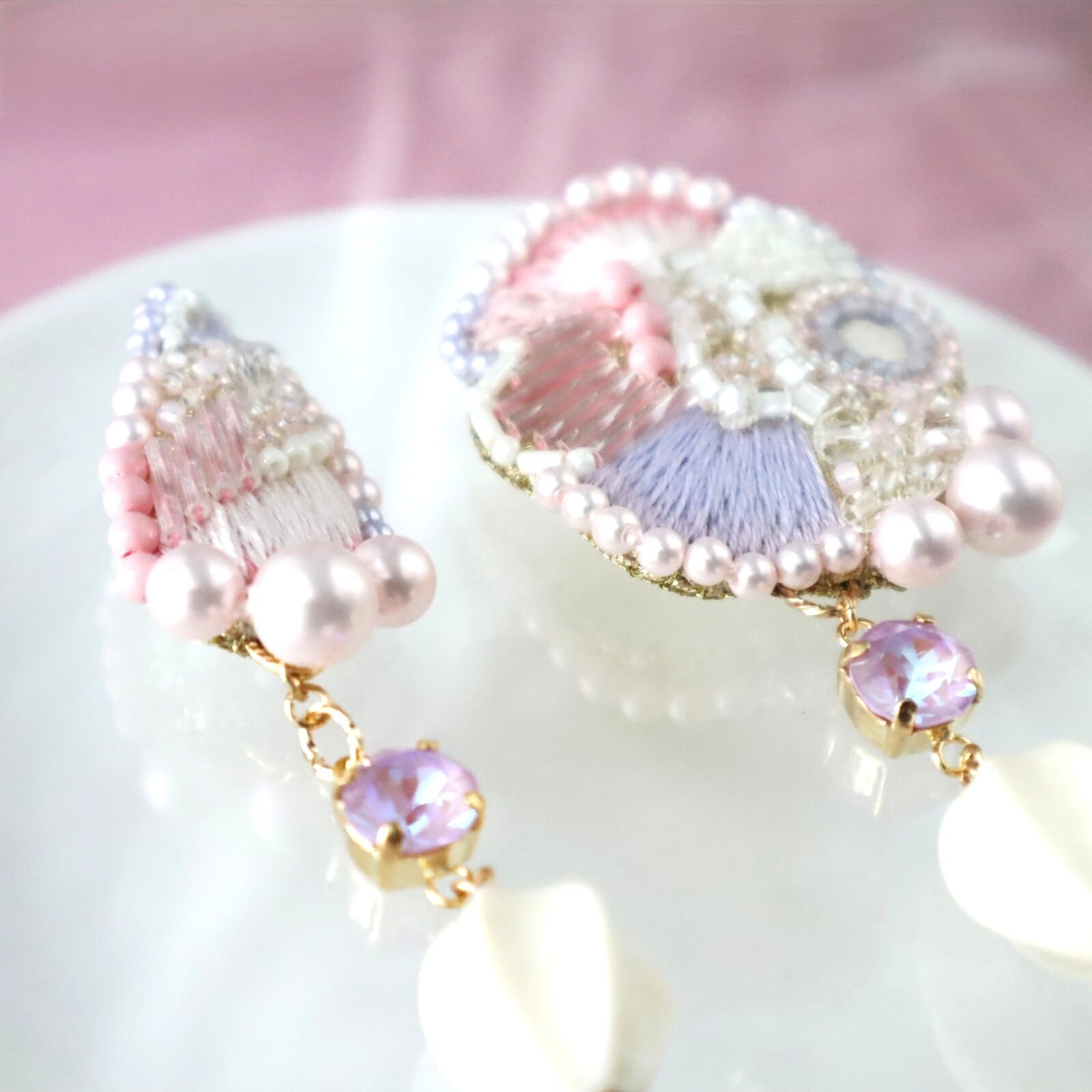 ‣クリスタルガラス、グラスビーズ、パール、樹脂、生地