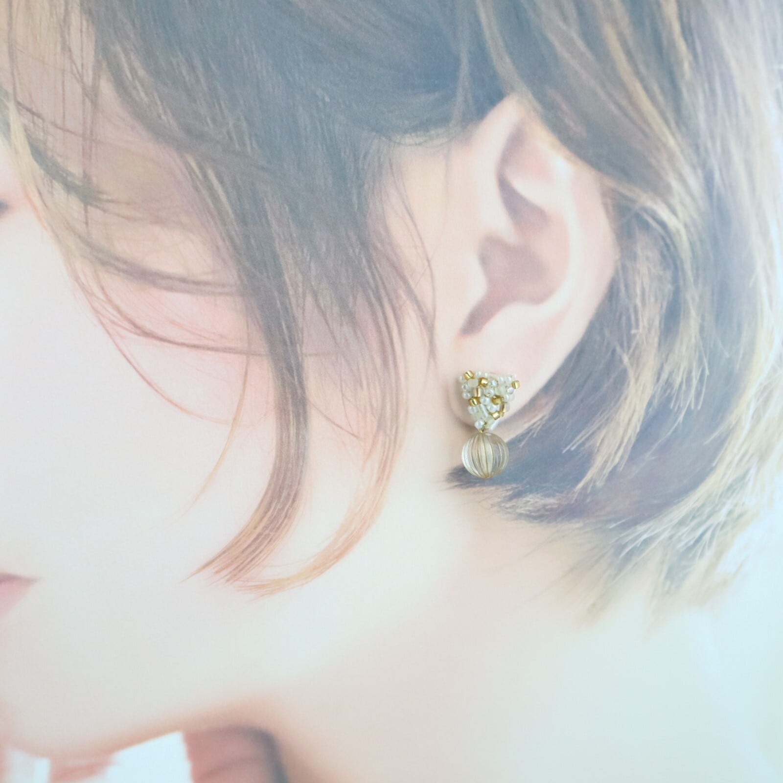 遠くを眺めると花々が咲いている森の景色を耳飾りに仕立てました。